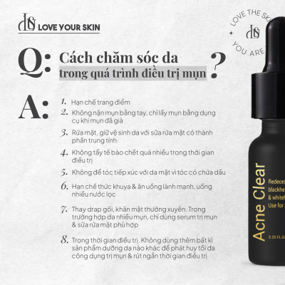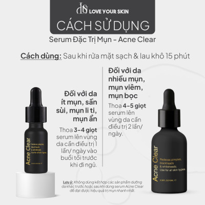 Lưu ý: Ko dùng kết hợp các sản phẩm dưỡng da khác trước hoặc sau khi dùng serum Acne Clear để đạt được hiệu quả trị mụn nhanh nhất.
